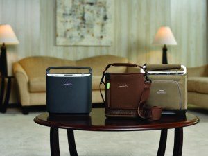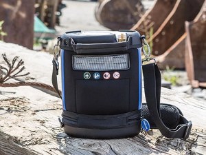 The Inogen One weighs only 4.8 pounds and offers a single battery that lasts up to four and a half hours and a double battery that lists up to nine hours. It can also be used with an A/C outlet at home, or D/C in the car, RV or boat.